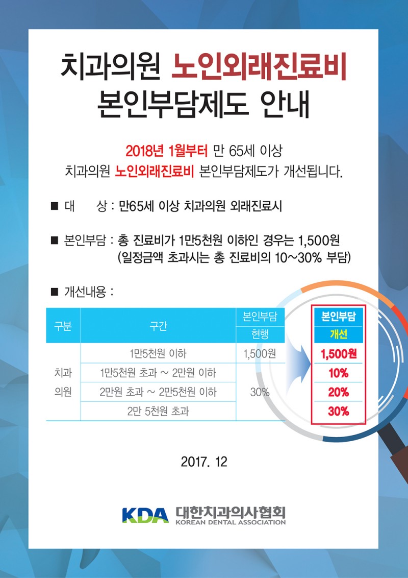 인쇄하기/글자확대.축소 기본 크게 더크게 인쇄 스크랩 목록보기 2018년 1월부터 만 65세 이상 어르신 노인외래진료비가 개선됩니다. 페이지 정보 작성자.바른생각치과 작성일.2018-01-04 13:57:52 조회.4,698 댓글.0 본문 2018년 1월부터 만 65세 이상 어르신 노인외래진료비가 개선됩니다. 인쇄하기/글자확대.축소 기본 크게 더크게 인쇄 스크랩 목록보기 이전글 ▲2018 설 연휴 휴진 일정 안내드립니다. 다음글 ▼2018년부터 스케일링 보험적용 기간 변경안내 댓글목록 등록된 댓글이 없습니다. 이전글 다음글 목록보기